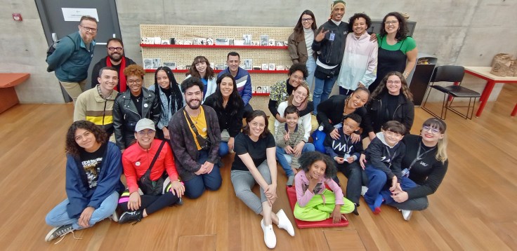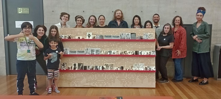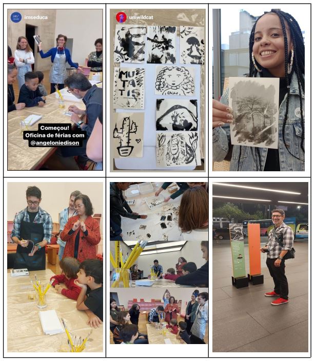Enquanto o pequeno grupo revelava no lab, as outras pessoas permaneciam ao redor da grande bancada, onde aconteceu a apresentação inicial, para desenharem com químico e papel, o tal do quimigrama. Nesse momento a Bibi (Gabi Giannotti) organizou e conduziu a atividade da maioria que agitava e aguardavam a vez na sala espaçosa.