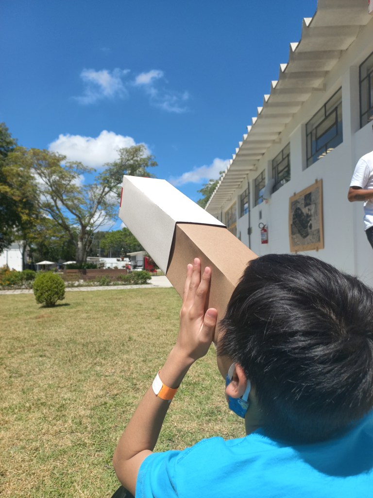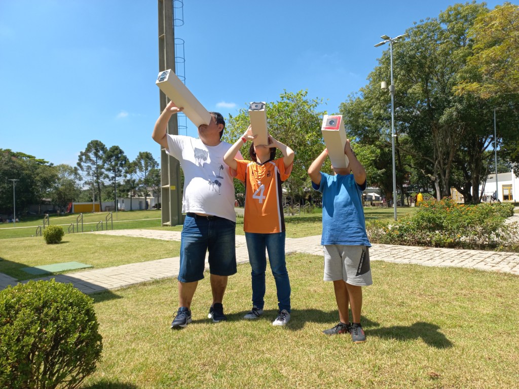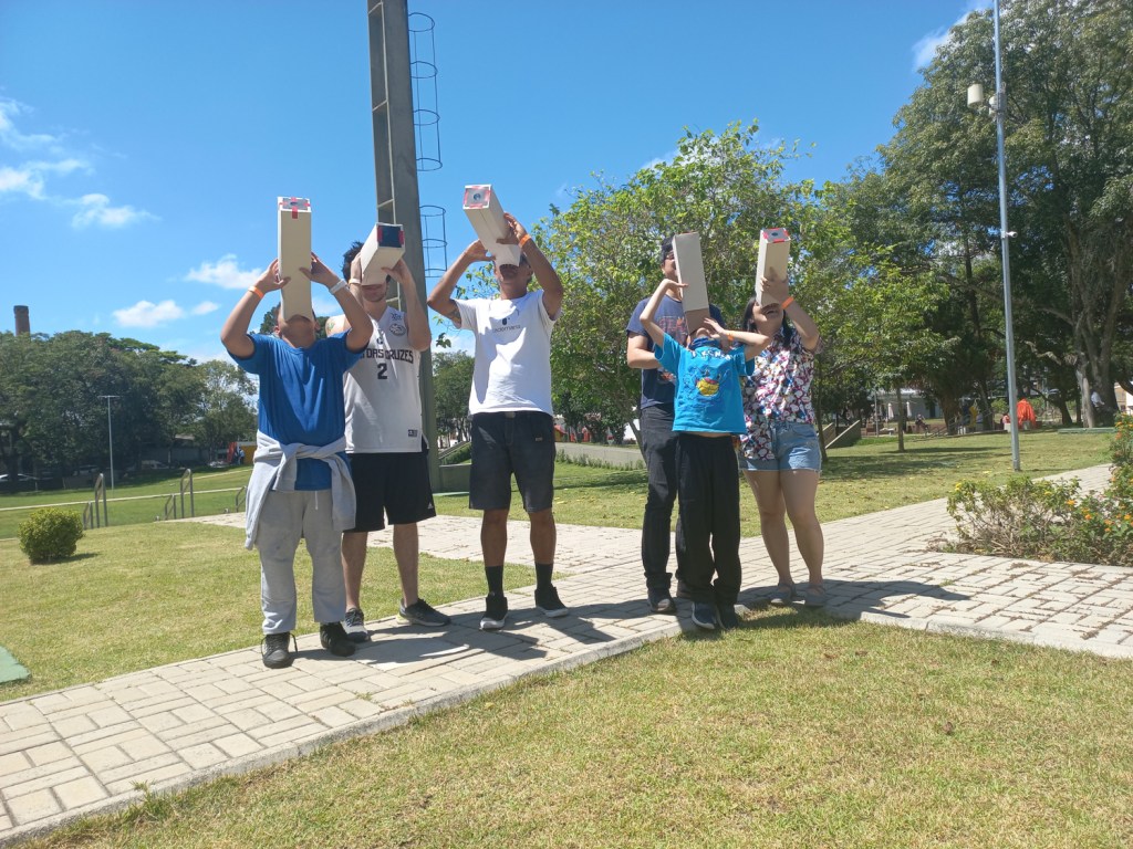 Nessa experiência de construir a câmera que, até então, só possuia um pedaço de papel alumínio com um furo suficiente para passar os raios de luz e produzir imagens na parte interna, os participantes contemplavam os objetos, as pessoas e a paisagem de uma forma não muito usual, de cabeça para baixo.