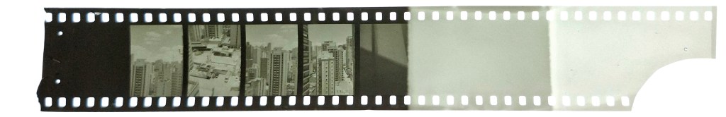 Esse teste já faz um tempo, guardei o restante dos filmes na geladeira e por lá ainda estão, porém esses dias resolvi fazer outro teste, revelá-lo com o processo preto e branco. Eu já tinha testado antes com decepção, mas queria tentar novamente, sei lá, vai que dessa vez uma luz cairia sobre o filme (isso é brincadeira), Fiz as diversas exposições = normal +1 +2 +3 +4 +5 +6 e fui revelar ainda com uma pontinha de esperança. Lembrando que ao fazer a revelação no processo preto e branco obviamente eu não teria cores no filme, mas seria uma forma de fazer esse filme funcionar de algum jeito. Revelei e, nada, tudo preto novamente.